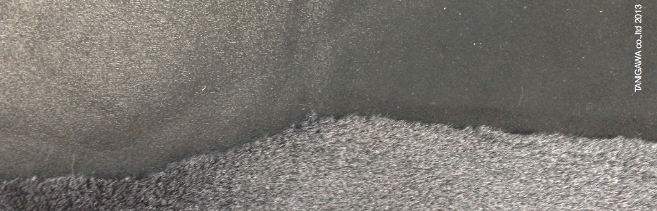 口頭で素材について説明させていただいても、どうしても「フェイク」ムートンであると言うイメージが先行するため、なかなか現物の良さを見ていただくことにつながらない素材ですが、現物を見て頂くとおもしろさを納得していただける素材でもあります。